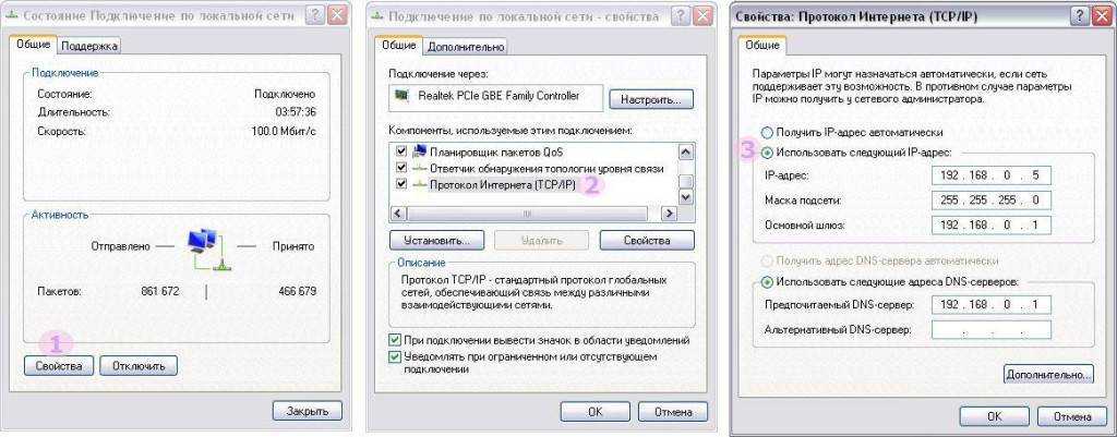 После этого, в этом же выпадающем списке (которое появляется при нажатии на иконку правой кнопкой мышки) выбираем последний пункт — «Свойства». И производим настройки нашей будущей локальной сети. Для этого переходим в пункт «Протокол интернета (TCP/IP)»