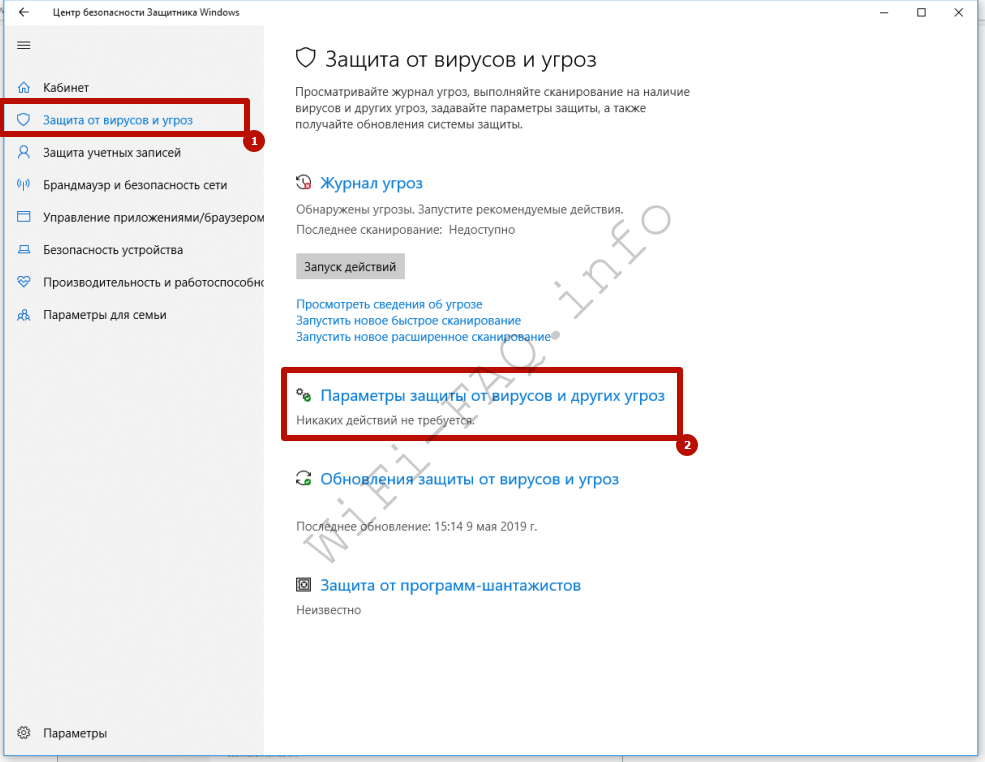 Откройте «Пуск», найдите «Центр безопасности защитника Windows». Перейдите в приложение, выберите раздел «Защита от вирусов и угроз», запустите «Параметры защиты».