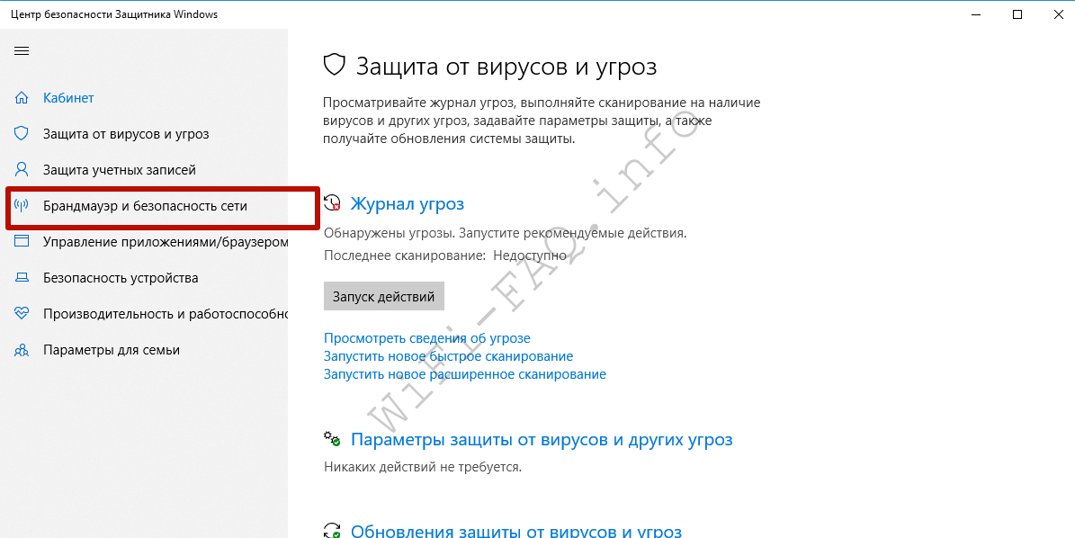 Если это не помогло, попробуйте отключить брандмауэр. Его можно запустить из «Центра безопасности Защитника Windows».