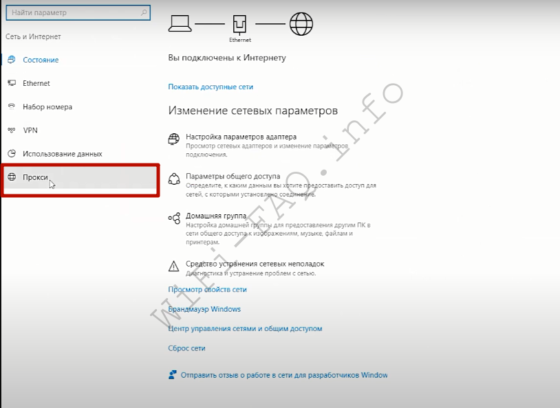 Возможно на Вашем ПК активен прокси-сервер. Он может работать некорректно и ограничивает скорость подключения. Чтобы отключить, откройте в параметрах «Сеть и интернет» раздел прокси.